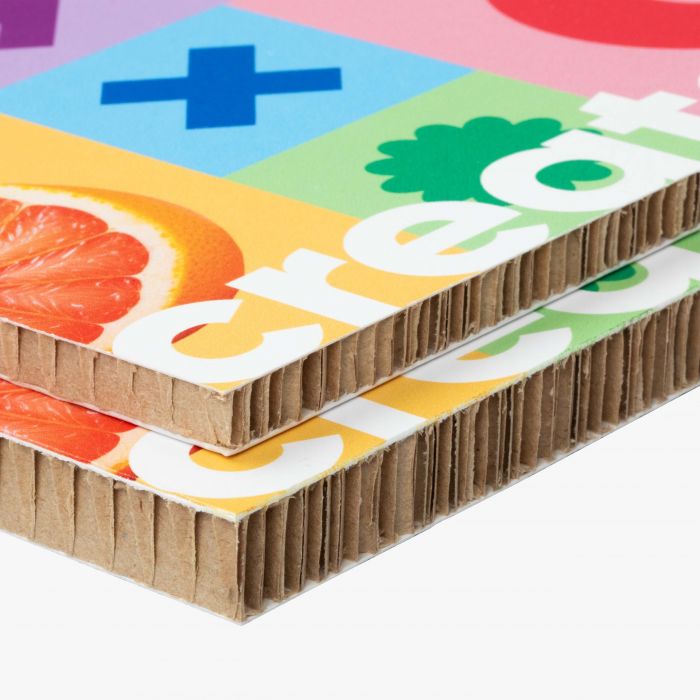 Re-board is een uniek paneel van honingraatkarton, voorzien van harde toplagen en een kern met een sandwichconstructie. Het materiaal laat zich eenvoudig snijden, frezen of contourfrezen en is zeer geschikt voor toepassing als POS-display, beurswand, wandpaneel, 3D-constructies, freesletters of bewegwijzering. Re-board kan full-color aan één of beide zijden bedrukt worden, waardoor je professionele visuals direct zichtbaar maakt. Re-board is volledig recyclebaar, licht van gewicht en daardoor makkelijk te verplaatsen en te monteren. Houd er rekening mee dat het materiaal niet waterbestendig is en voornamelijk bedoeld is voor binnengebruik.