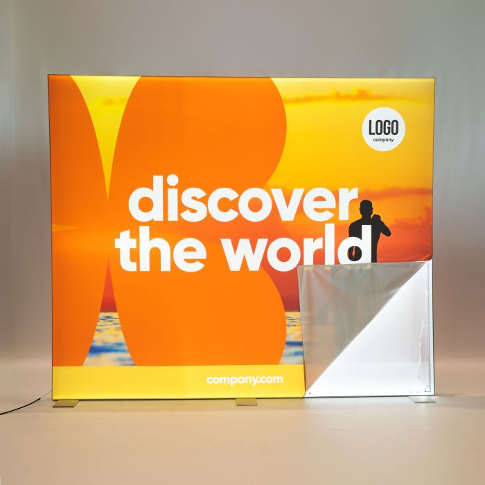 Op zoek naar een stijlvolle reclame-oplossing die direct opvalt? De LED beurswand is perfect voor beurzen, evenementen, pop-up winkels of presentatiewanden. Dankzij de geïntegreerde LED-verlichting en full-color doeken springt jouw boodschap extra helder en krachtig in het oog. De LED beurswand is beschikbaar in zes formaten, waardoor je de wand precies kunt afstemmen op jouw beursruimte. Daarnaast kun je kiezen voor dubbelzijdige doeken, zodat je aan beide kanten van de wand een andere boodschap laat zien of dezelfde visual dubbel gebruikt. Er zijn twee hoogwaardige textielopties die beide zorgen voor diepe, levendige kleuren en optimale lichttransmissie.